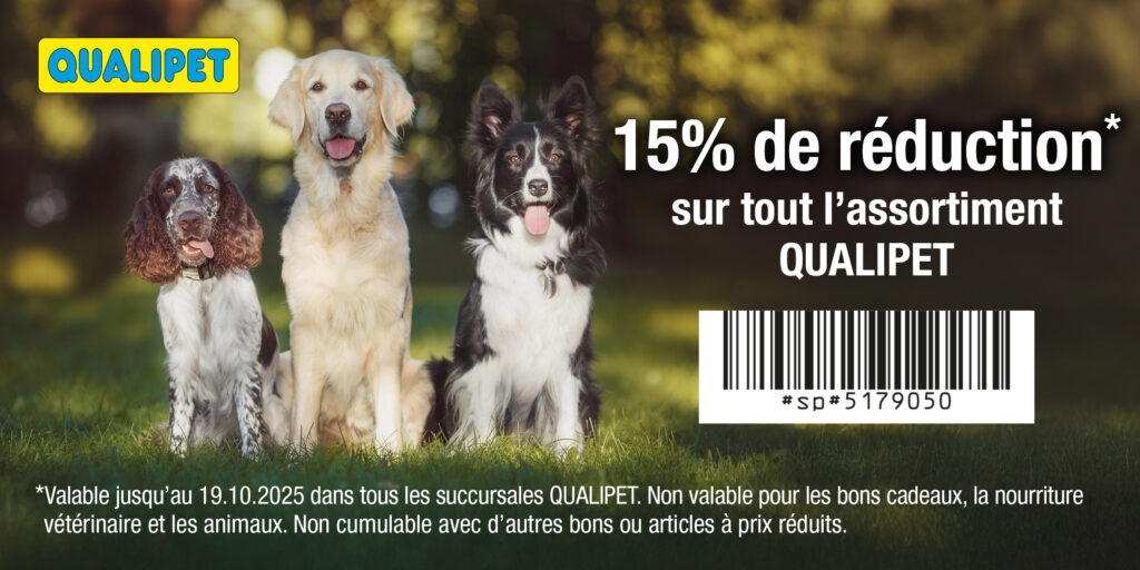 - 15 % de réduction sur tout l’assortiment chiens de QUALIPET