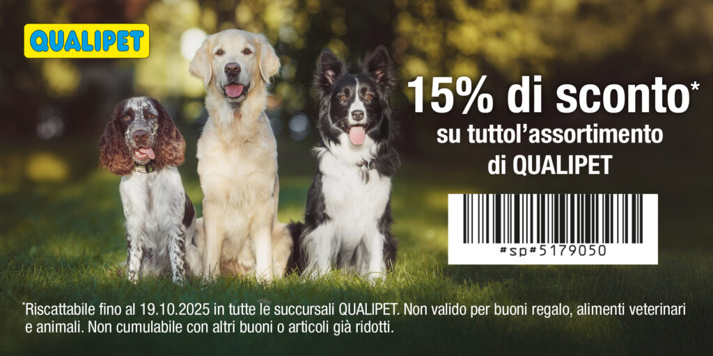 - 15% di sconto su tutto l’assortimento di prodotti per cani di QUALIPET